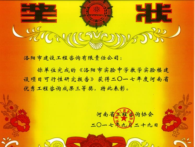 2017年河南省優(yōu)秀工程咨詢(xún)成果三等獎